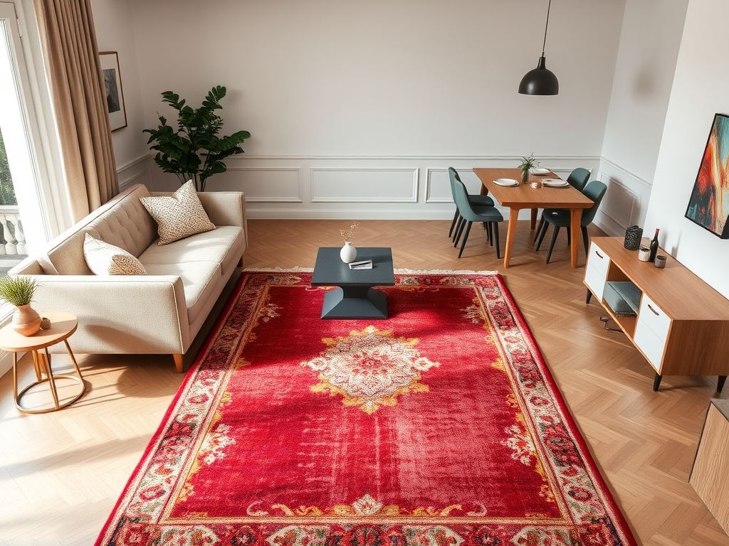 Aby podział był efektywny, dopasuj wymiary dywanu do wielkości strefy. Jeśli chcesz oddzielić jadalnię od strefy relaksu, upewnij się, że dywan jest na tyle duży, by obejmował stół lub sofę, co wzmacnia wizualny podział. Unikaj umieszczania dywanu poza wyznaczonym obszarem, gdyż może to zaburzyć równowagę i przejrzystość aranżacji.