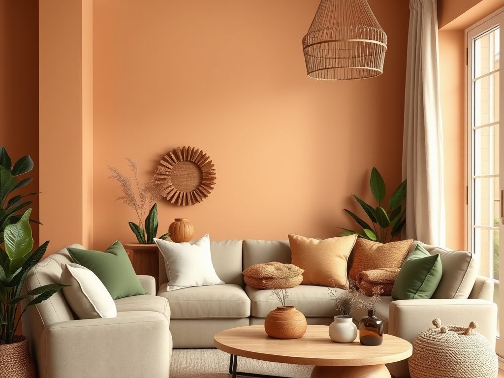 Łącz ciepłe barwy ziemi z odcieniami inspirowanymi naturą, aby stworzyć harmonijną przestrzeń w swoim wnętrzu. Zastosuj zasady ton w ton, wykorzystując różne odcienie jednego koloru, takie jak beż, terakota czy brąz, co zapewni elegancki oraz spokojny efekt. Wprowadź do aranżacji mieszankę neutralnych barw, jak szałwia i piasek, łącząc je z mocniejszymi akcentami, na przykład burgundem lub granatem, by nadać wnętrzu charakteru i głębi.